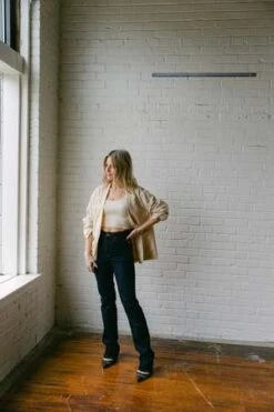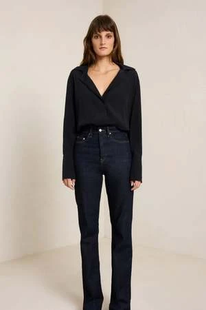 These jeans by ALC features a high rise and slim, slightly bootcut leg.