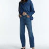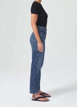 Featuring a flattering high-rise waist with a close-fitting top block through the hips, an easy, classic straight leg finished with a full-length inseam.