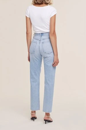 Agolde 90’s pinch waist, high rise in Flashback. This is an update to the best selling 90’s jean. This pair sits neat at the true waist with a close-fitting top block, finished with an easy straight leg and button fly.