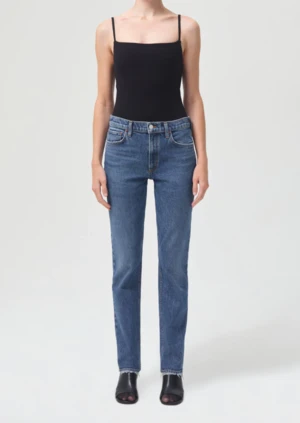 Fit: True to size | Low rise | Slim straight leg, elongating inseam that can be worn stacked