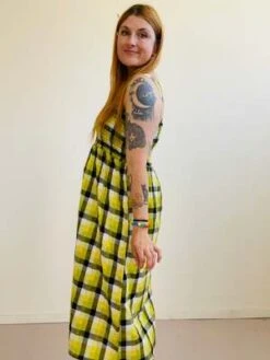 Our jaws dropped when we found this amazing plaid – in two stunning color ways. I don’t know how to decide which one I love more. This deadstock poplin blend feels amazing. It has a swingy weight, but still holds opacity.
