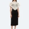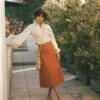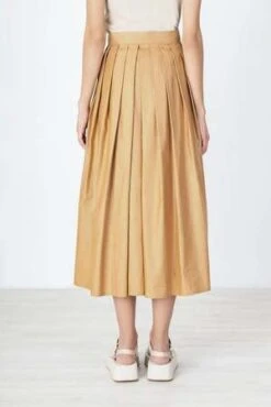 Pleated effect skirt with a hidden closure on the front with contrasting plate and resin buttons. Stripes with shiny effect.