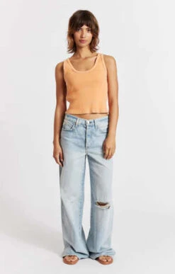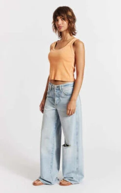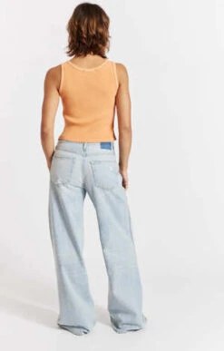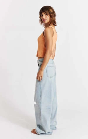An effortless, mid-rise jean done with just the right amount of ease. Theyll fit loose through the hip, thighs, and the wide leg. Zip fly.
