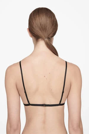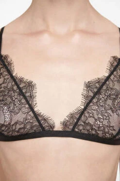 The Bella Bra in Black by Anine Bing is a delicate, triangle-shaped bralette crafted in a delicate stretch-lace fabrication.