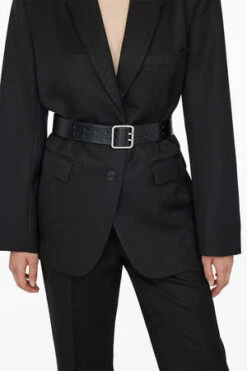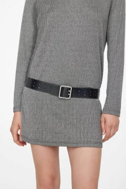 Intended to wear loose at the hips or high at the waist, the Naumi Belt is made from 100% leather accented with silver micro-stud embellishments throughout. This early 2000s-inspired accessory features a double-pronged buckle at the center front in matching silver hardware.