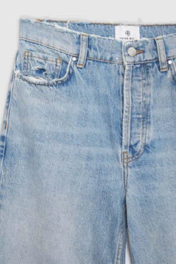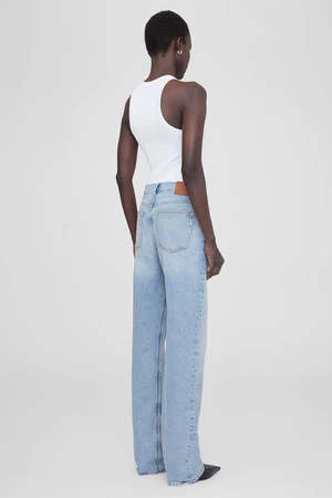 A long, ultra-relaxed jean constructed from a rigid organic-cotton denim blend without stretch in a washed-down bleached blue. This vintage-inspired pair features subtle abrasions and distressing throughout, including destruction at the pockets and hem.