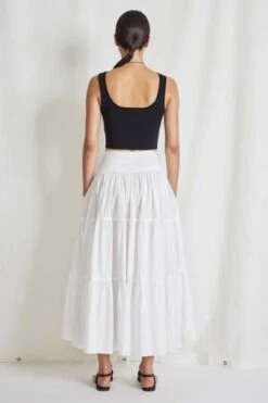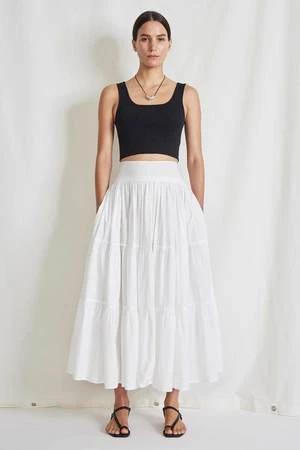 Maxi length, 3 tiered skirt, zipper closure