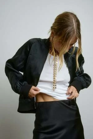 96 Silk 4 Lycra super heavy silk charmeuse, shine side out.