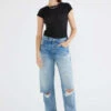 Lary is 5’7″ wearing a size 25 with the boy tee size 1.