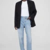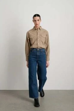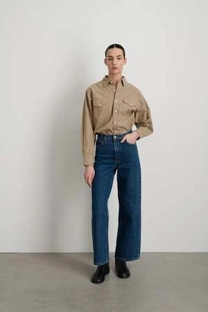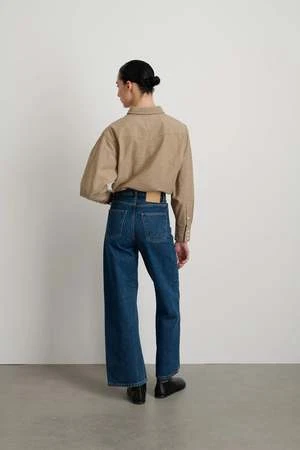 cut from cotton-rich indigo dyed denim and stonewashed to cantaloupe the blue hue, for a cool broken in look. designed to sit at the natural waist and fall into a relaxed wide-leg silhouette.