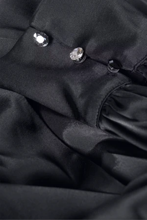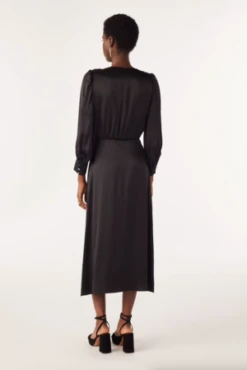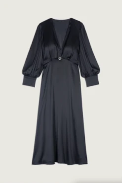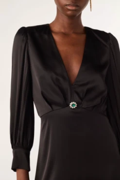 The CHIARA dress will quickly become one of your favourites. This midi style has long sleeves with three rhinestone buttons in different colours. The skirt is cut on the bias for an irresistible fitted effect and we love the deep V-neck taken to the next level by a brooch you can remove if you like. Carry a little chain bag with it.