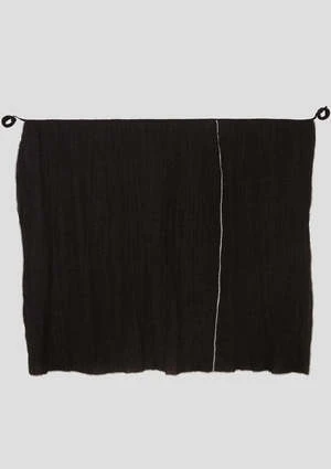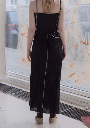 The Shok Wrap Skirt from Baserange is made of crinkle linen and features exposed seam details.