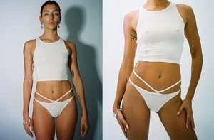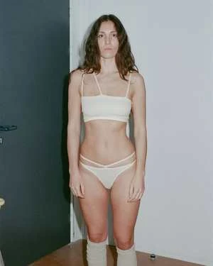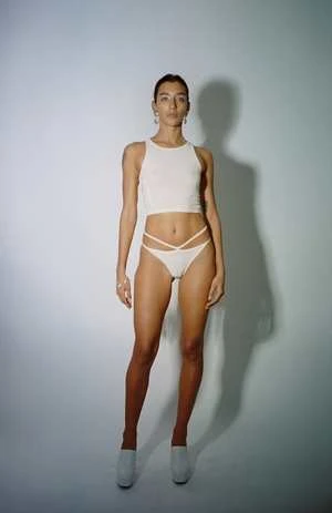 Fine cotton rib underpants. Elastic trim at waist and leg. The philosophy behind Baserange is to create clean, easy, and accessible garments that exist somewhere between modern culture and the natural world. Worn with the Undyed Tie Tank Bra.