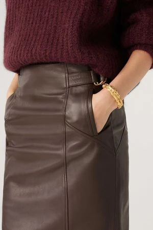 This straight SELENA skirt is highlighted by a belt adorned with trendy details, for a modern and elegant look. We love this skirt for its eye-catching yokes and visible stitches. Feel free to wear it for work or nights out with a long-sleeve top or shirt. And don’t forget your favorite boots!