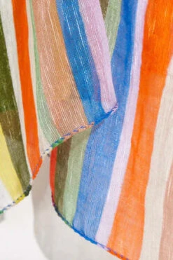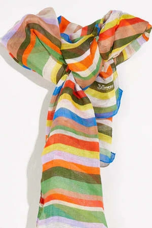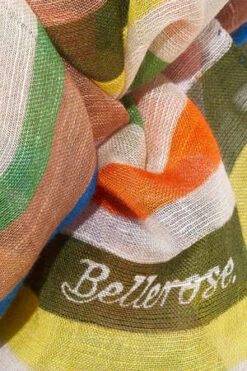 Worn as a sarong or as a classic scarf, the Inst scarf instantly boosts the color ratio of any outfit. Made from an Italian blend of modal, linen, and silk, it combines all the colors of Bellerose’s current collection with a classic stripey pattern.