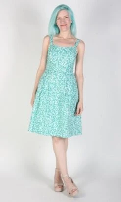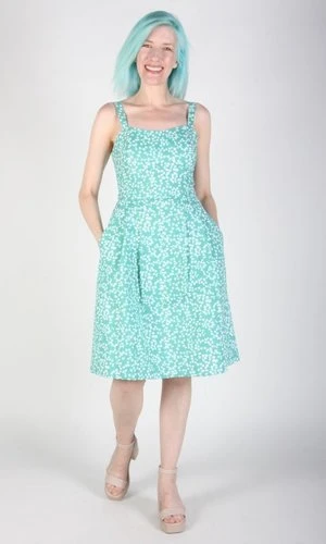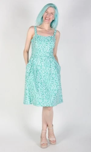 Introducing the Bee Martin by Birds of North America! This new style is a perfect summer sundress, with a fitted bodice and pleated skirt, as well as deep front pockets and a sweetheart shaped neckline. Made with lightweight cotton fabric, it provides a comfortable fit that won’t weigh you down on hot summer days. Closes with an invisible zipper down the back!