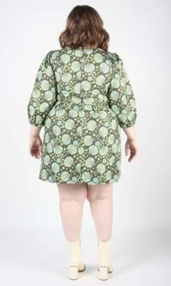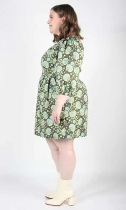 Courian has a scooped neck, full sleeves that gather just below the elbow, and our classic skirt cut with pockets, of course! The skirt is lined in cotton voile, and it closes with a back invisible zipper.