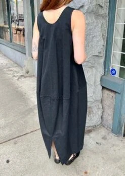 Courian has a scooped neck, full sleeves that gather just below the elbow, and our classic skirt cut with pockets, of course! The skirt is lined in cotton voile, and it closes with a back invisible zipper.