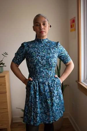 Birds of North America’s Guineafowl Dress is back! This tailored style features their classic fit-and-flare cut, but is updated with small details like the standing collar and inverted box pleat on the sleeve. The silhouette is ’60s-inspired and the hem hits around the mid-thigh. It closes with an invisible back zipper and the skirt is fully lined. Pair it with tights and boots for an instant fall outfit.