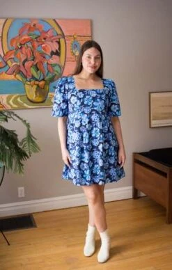 Birds of North America’s Swamp Angel Dress is warm weather goodness. Made out of a printed cotton, this dress has a full half-sleeves, princess seams and square neckline. The babydoll fit is tight on the bust, with a skirt that flares out beautifully in the empire waist to just above the knee. We love the youthful ’90s vibe of this dress. Style it on its own with heels for a feminine look, or pair it with fishnets and Doc Martens to go full riot grrrl!