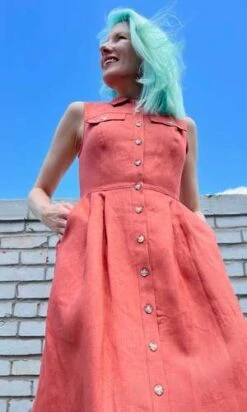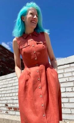 Tree Mouse is a classic Birds shirt dress with pleats and pockets in the skirt. It’s made of a beautiful 100% linen, and the front closes with natural coloured buttons. This is a fabric that will get softer and more beautiful every time you wash it, for years to come!