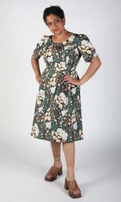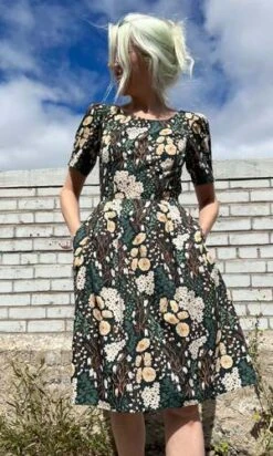 The print is an OEKO-Tex certified 100% cotton, which means that every component has been tested for harmful substances and found to not be ecologically harmful. The skirt is lined in cotton voile and the dress closes with a back invisible zipper. Winter Chippy can be hand or machine washed on a cold delicate cycle and hung to dry.