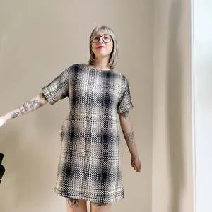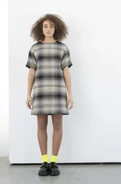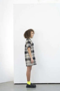 Bodybag’s Bleeker dress is a straight cut tunic style dress crafted from a beautiful plaid woven cotton. This dress is fully lined and has functional pockets, featuring a round neck with a drop shoulder and short sleeves. We love the heavy woven cotton of this dress making it such a perfect pick for fall and winter. Pair with tights and combat boots and hit the town!