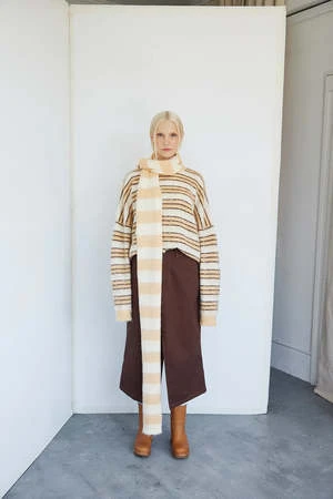 This fuzzy knit scarf will keep you warm all winter long. style it however you like.