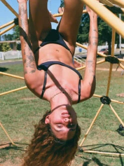 Stretch cotton bralette in navy with black elastic trim. Comfy and perfect for everyday wear.