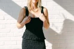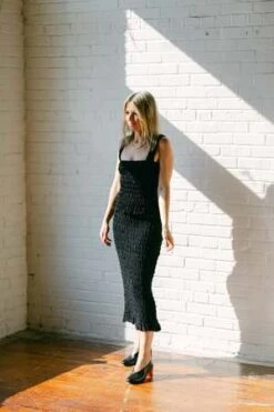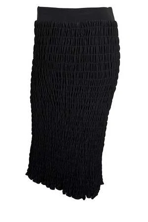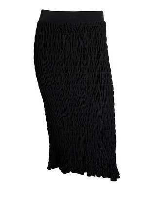 This skirt by by Malene Birger features a shirred finish, high waist, and elastic waistband.