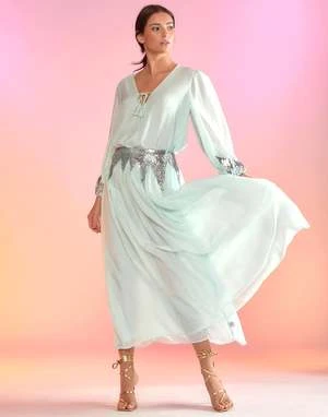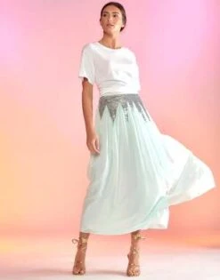 Breezy silk skirt with sequin detail along the waist.