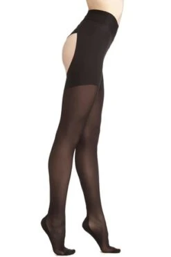 – The contrasting sheer and opaque panels create form and highlight the body. The crotch is open for comfortable and easy wear.