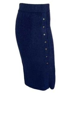This skirt by Eleven Six features a high waist, side front button closure, and midi length.