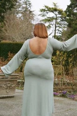 The Virtue dress is sure to be the staple of the season. This effortless piece has a low back, a lightly flared hem, and wide sleeves. This sage colour is a limited edition, exclusive to Luna.