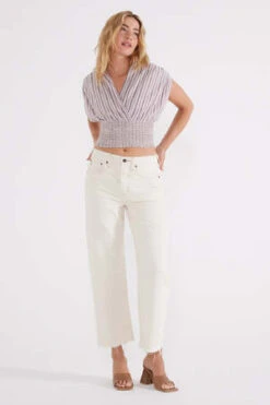Low slung and easy, this style sits comfortably on the hip with menswear sized pockets and a cropped hem. A clean, waterless process brings out the unique speckled texture of this natural denim fabric.