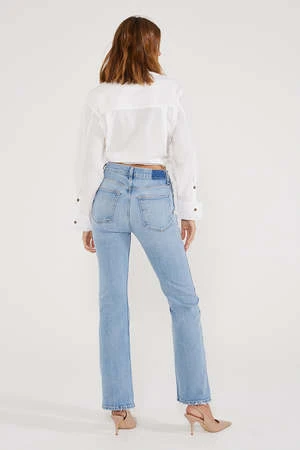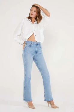 A modern flare with a slim fit and a gradual opening that finishes just past the ankle. A soft organic comfort stretch denim is finished in a clean light wash with caballo seaming details.