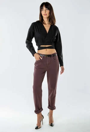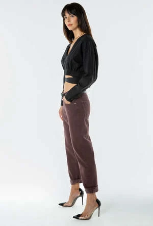A modern relaxed fit with an easy rise and a slightly tapered leg for an effortless slimming effect. A grounding earth tone finishes the look.