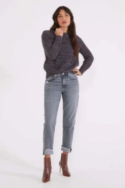A modern relaxed fit with an easy rise and a slightly tapered leg for an effortless slimming effect. A clean, low impact wash with subtle destruction adds a bit of an edge.
