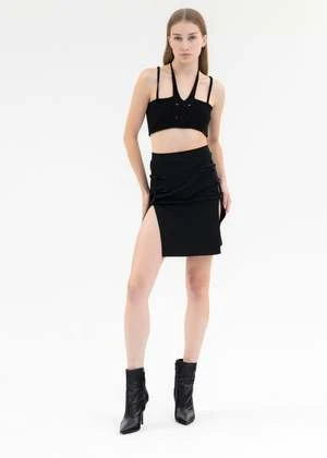 Model is 5’7″ (172 cm), 98 pounds (44kg), usually wears S in tops. A size 25in denim and S in trousers. Size 8 in shoes.