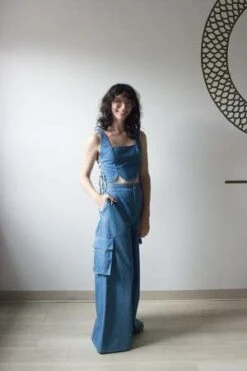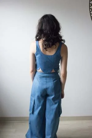 Fortiv’s Tulip Top is a sweet and modern take on a corset style crop top. The Tulip top features a curved square neckline, lace-up sides, and a petal like hem reminiscent of a beautiful tulip. It can be adjusted as needed and is fitted throughout the upper body, but has ease at the waist to stay comfy! Live your garden fantasy dreams in the reclaimed fabric corset!