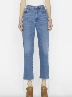 Frame Le Jane Crop Raw Fray Denim in Caramia is a flattering cropped length jean. This ultra-high-rise jean is fitted through the hips, and pefect to hug your curves with a slightly relaxed at the thigh, and straight through the legs. Crafted from a rigid sustainable denim that breaks into a beautiful lived-in feel. Ultra High Rise Fit. Best Selling style for Frame Brand.