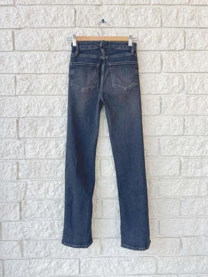 The Frame Le Super Hight Straight Slit in Murphy is a timelessly look with its straight-cut silhouette and ankle slits. The lighter washed detail around the thigh gives these jeans a unique edge that ensures they can be paired with any top to elevate your style.