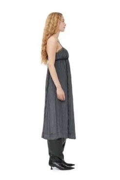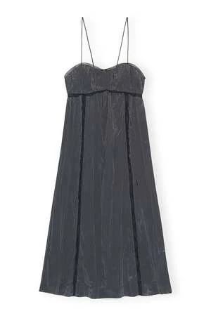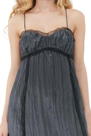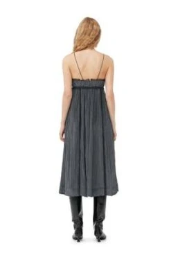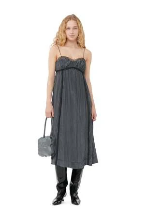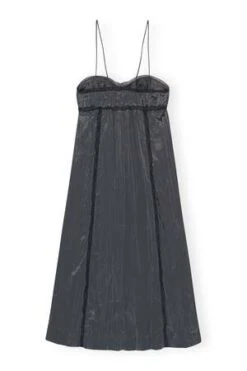 This Grey Shiny Tech Strap Midi Dress is designed for a slim fit and features thin straps, lace detailing and a zip closure at the back.