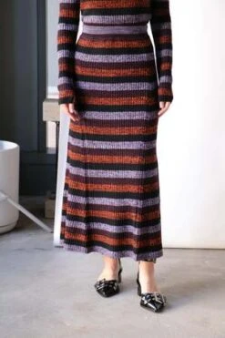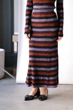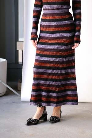 Ganni Sprayed Merino Rib Maxi Skirt in Multicolor.