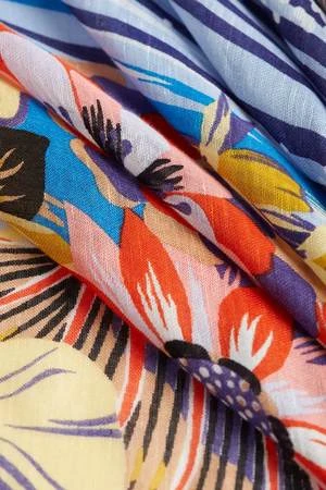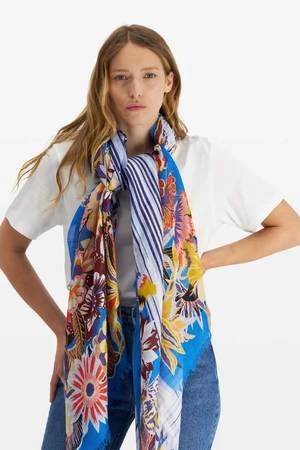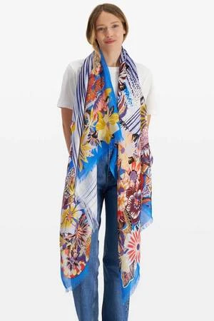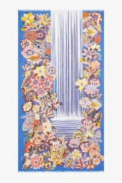 Inoui Editions Scarf 100 Euphoria in Pastel. The favorite fabric for summer is light and airy linen quality. This scarf will keep you feeling fresh during summer while adding elegance to any outfit. outfits. 60% Linen 40% Modal 100 x 190 cm Made in India. Euphoria is a hand illustrated floral and waterfall on a blue background.