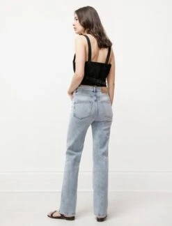 The Eiffel fit is a super high rise, bootcut 5-pocket jean featuring a slim thigh, full length, and zip fly closure. Reminiscent of jeans worn by Jane Birkin and Francois Hardy alike, cut from organic cotton with just a little recycled polyester and elastane for comfortable wear all day long.