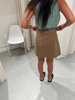 Classic button-down skirt. Fitted cut can be perfectly paired with a tucked, oversized top for effortless chic.