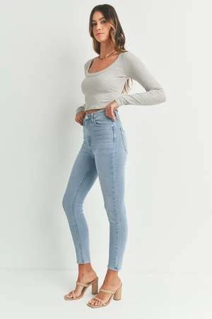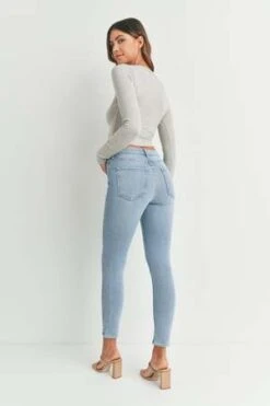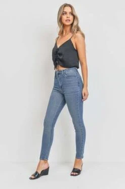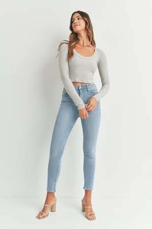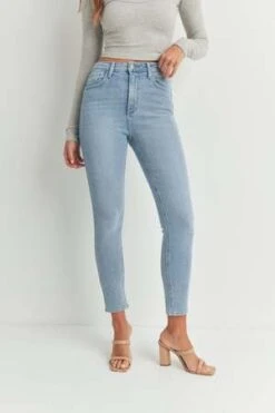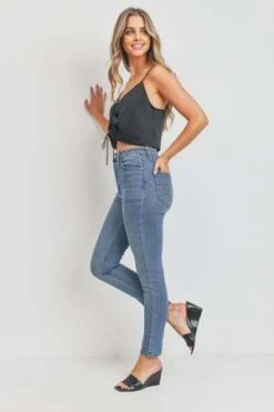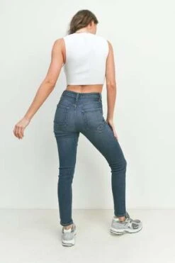 A vintage feel in a modern cut, this skinny jean gets its throwback appeal from a dark, faded wash and a high-rise waist. Versatile and comfortable, this pair is as laid back as a night in listening to your favorite album on vinyl.
