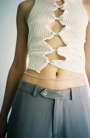 Part of the SS22 collection, the Gaia belt is made of brass dipped in palladium and blue crystals. The belt is designed and handmade in France. It is also convertible into two necklaces.