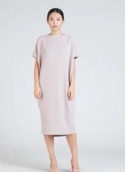 BEST SELLER! the kaarem triangle open back dress is a trademark midi-length style constructed with two pieces of fabric and a natural drape creating the open back detail. the dress features a hand braided button loop is finished with a blind stitch.